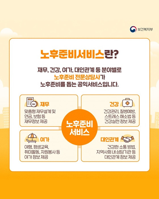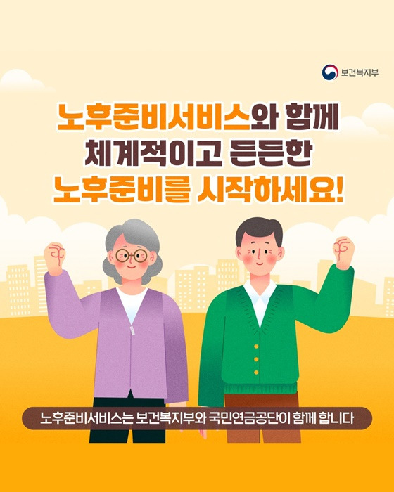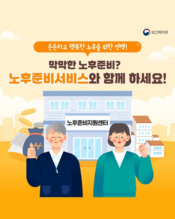 '노후준비서비스'는 이처럼 불안한 미래를 미리 대비할 수 있도록 도와주는 정부 지원 프로그램입니다.