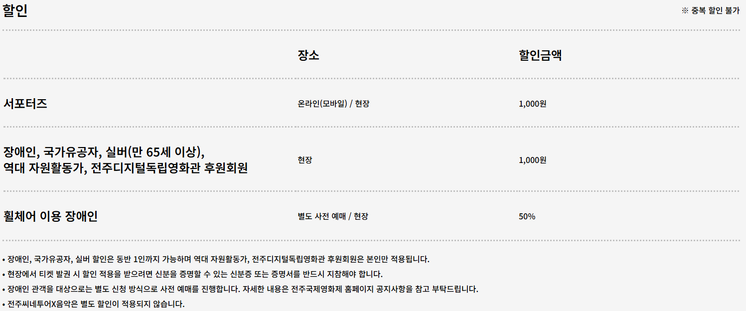 - 전주시민 할인 (주소지 확인 필수, 동반 1인까지 가능)