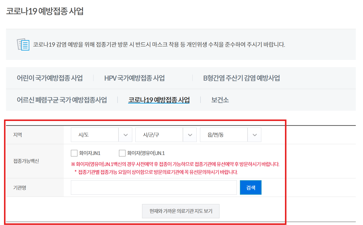 - 검색 결과에서 접종 가능한 의료기관 확인