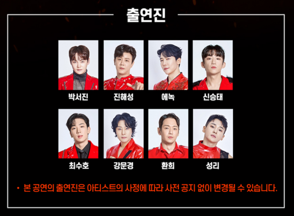 지역별로 출연진이 다르며, 사전 공지 없이 변경될 수 있으니 예매 페이지의 상세정보를 꼭 확인하세요.