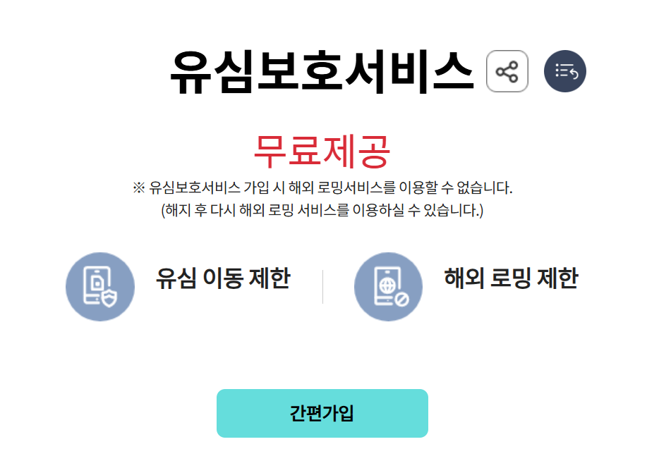 유심보호서비스를 해제하면 해외 로밍 서비스 이용이 가능해지지만, 동시에 유심 보안이 해제되므로 보안에 주의하시기 바랍니다.